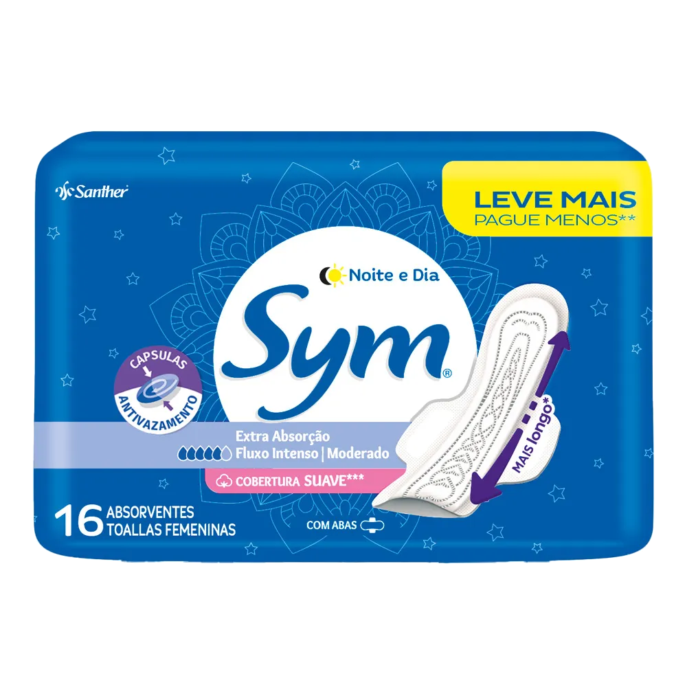 Absorvente Sym Noite & Dia Suave Com Abas 16 Unidades