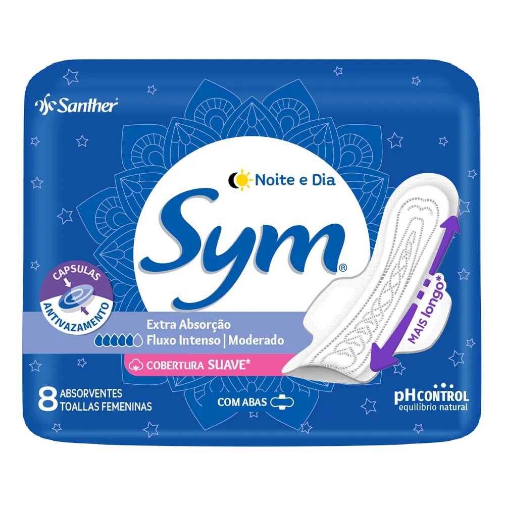 ABSORVENTE SYM TOTAL PROTECT NOITE E DIA COBERTURA SUAVE COM ABAS