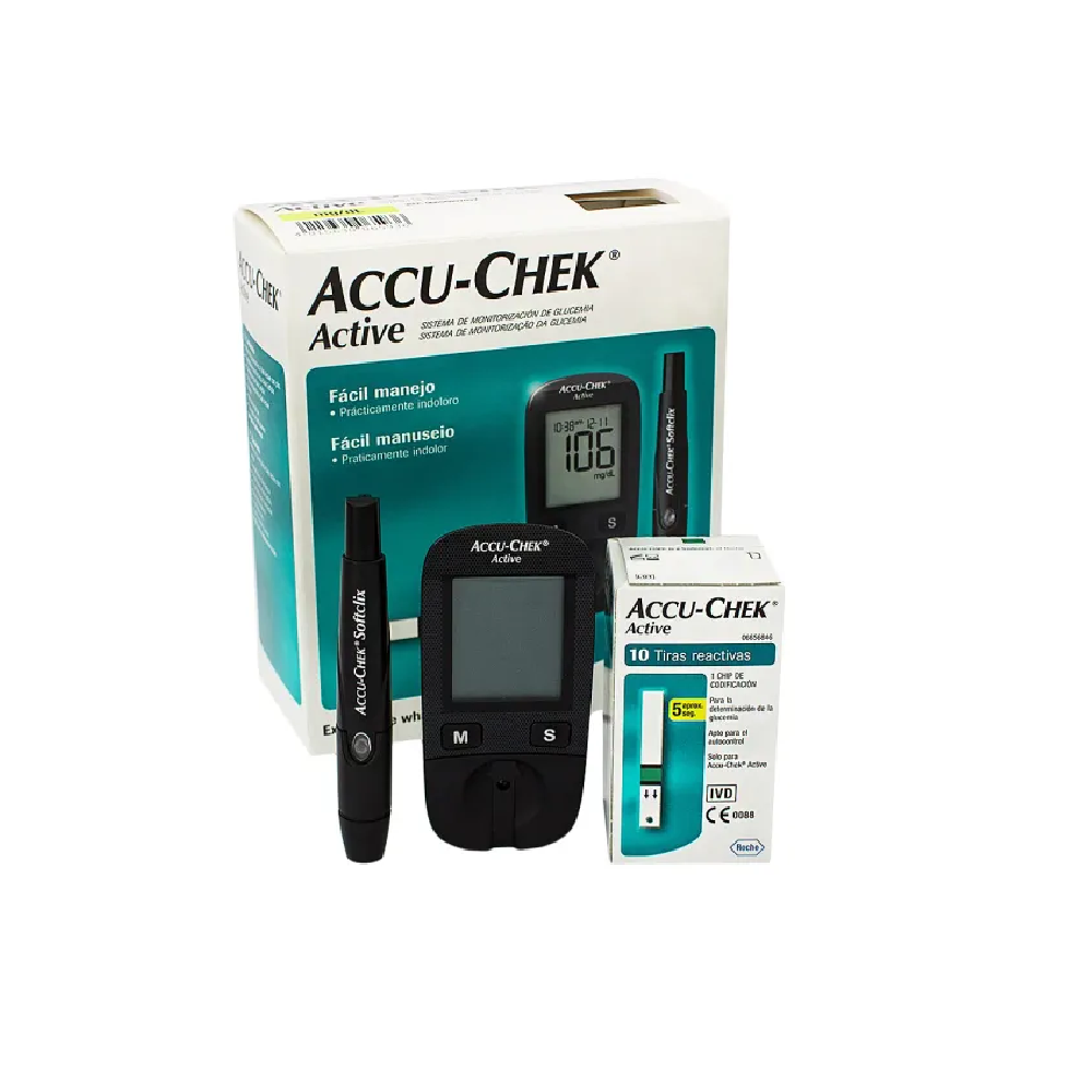 Accu-Chek Active Kit Monitor de Glicemia com 1 Monitor + 10 Tiras Teste + 1 Lancetador + 10 Lancetas