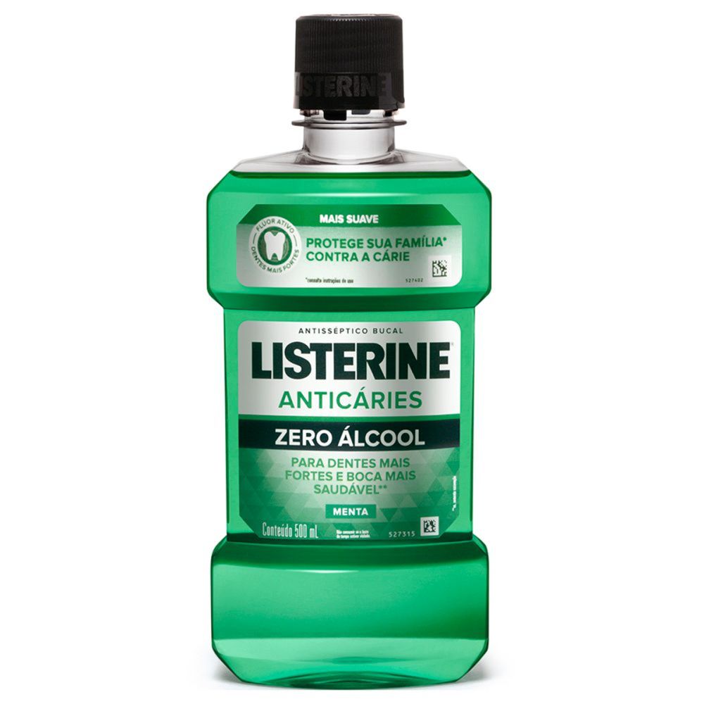 ENXAGUANTE BUCAL LISTERINE ANTICÁRIES ZERO ÁLCOOL MENTA 500ML