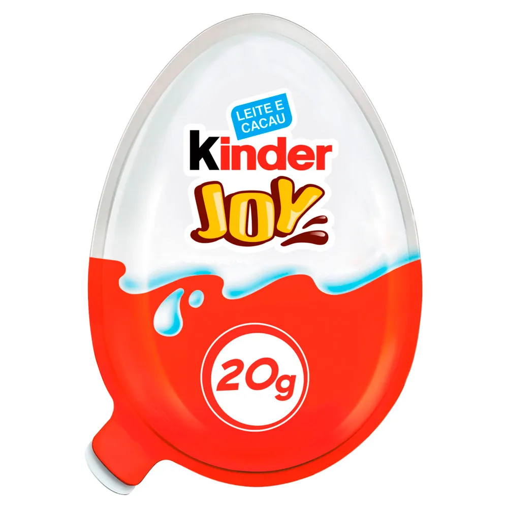 KINDER JOY de um lado um delicioso creme à base de cacau-avelãs e leite com duas bolinhas crocantes. Do outro lado uma divertida surpresa.