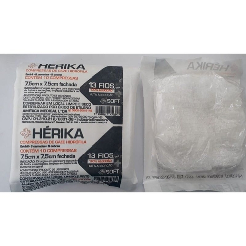 Compressa de Gaze Esteril Hérika Gaze para Curativo Gases Gaze Estéril