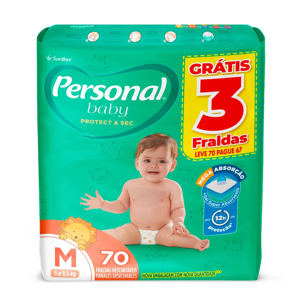 Fralda Personal Baby Protect & Sec Tamanho M 70 Unidades