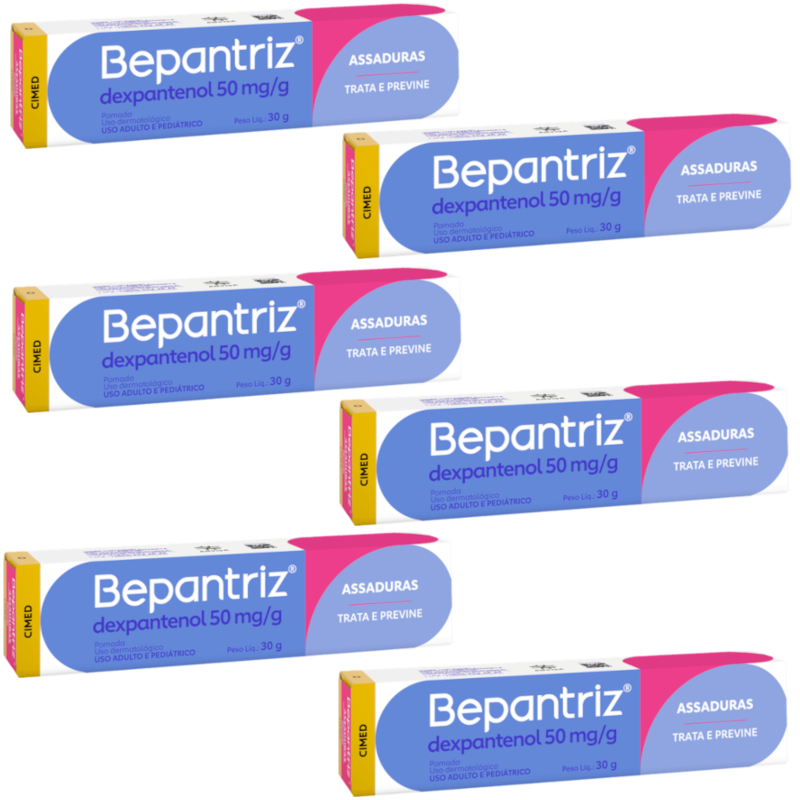 Kit 6 Pomada Assaduras Bepantriz 30g - Cimed Pomada para Assaduras Bepantriz Dexpantenol 50mg/g (30g) da Cimed, ideal para prevenção e tratamento de assaduras, fissuras, dermatite de fraldas e mais: Embalagem única de 30g, perfeita para teste inicial ou uso ocasional. Indicação simples: aplicar em cada troca de fralda para prevenir assaduras Imagens Meramente Ilustrativas.
