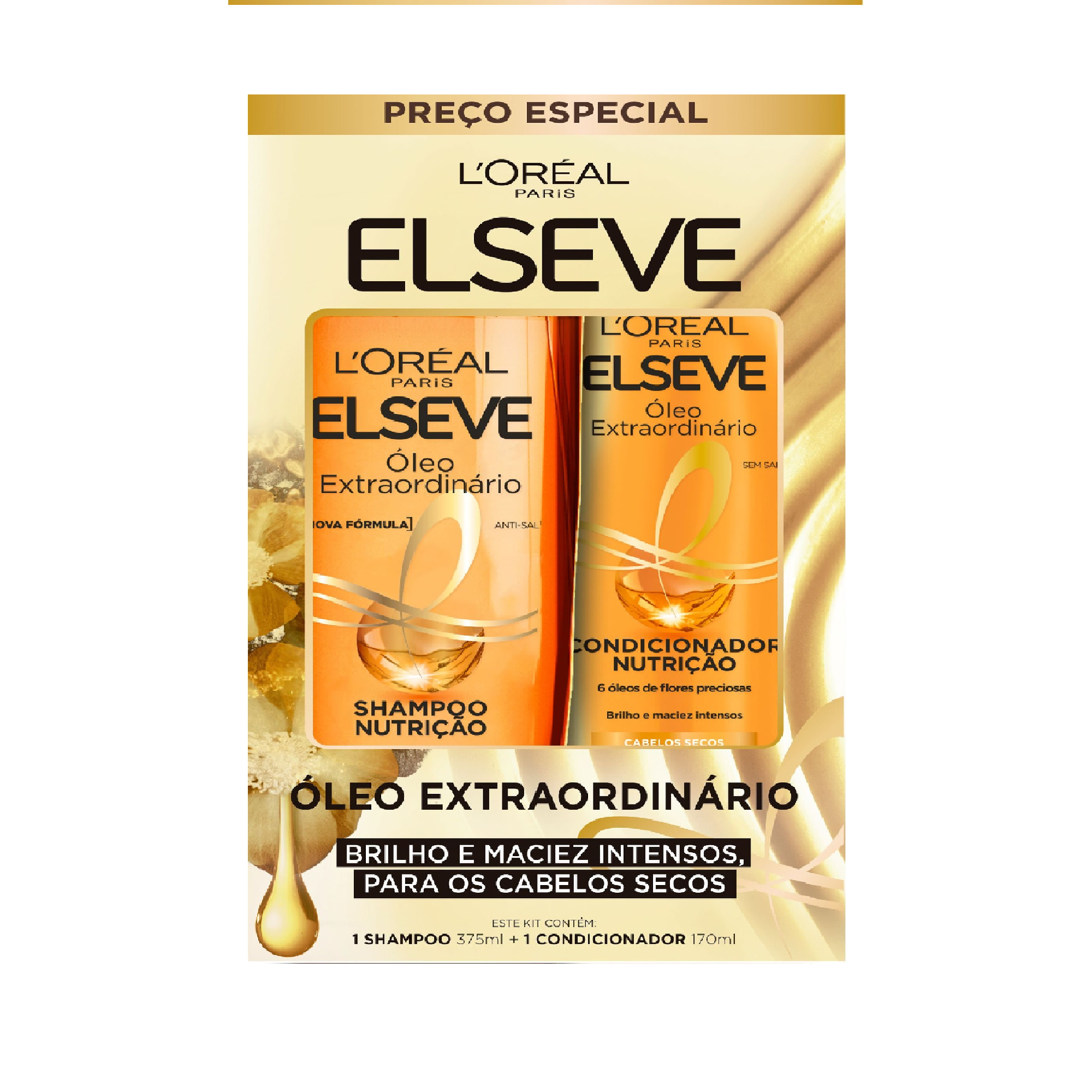 SHAMPOO + CONDICIONADOR ELSEVE ÓLEO EXTRAORDINÁRIO NUTRIÇÃO 375ML+170ML PREÇO ESPECIAL